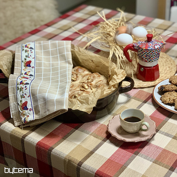 Egy gyönyörű, szőtt terítő, amely rusztikus és modern stílusba egyaránt illik.
