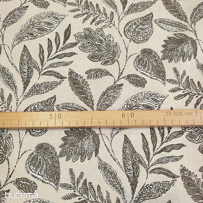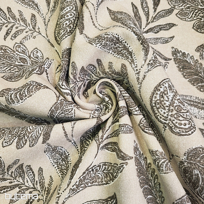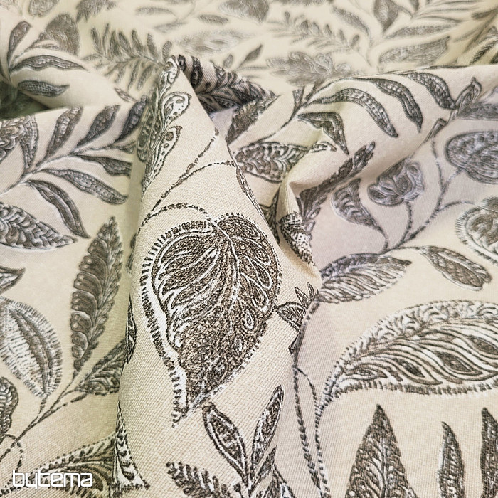Dekoratív szövet különféle nagy levelekkel.