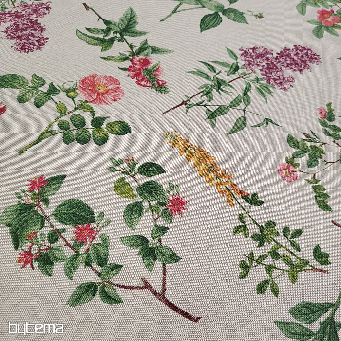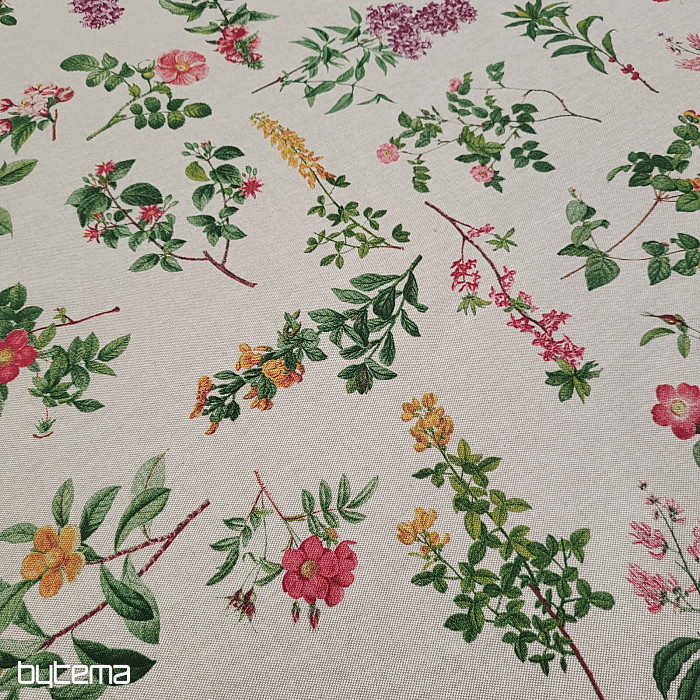 Egy sima alapon tavaszi virágözönnel díszített dekoratív szövet otthonod dizájn szépsége lesz.