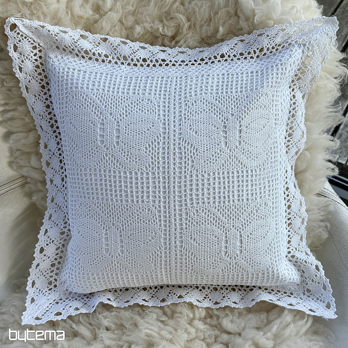 Tökéletes fehér csipke párnahuzatok finom mintával. Csodálatos dekoráció minden vidéki stílushoz.