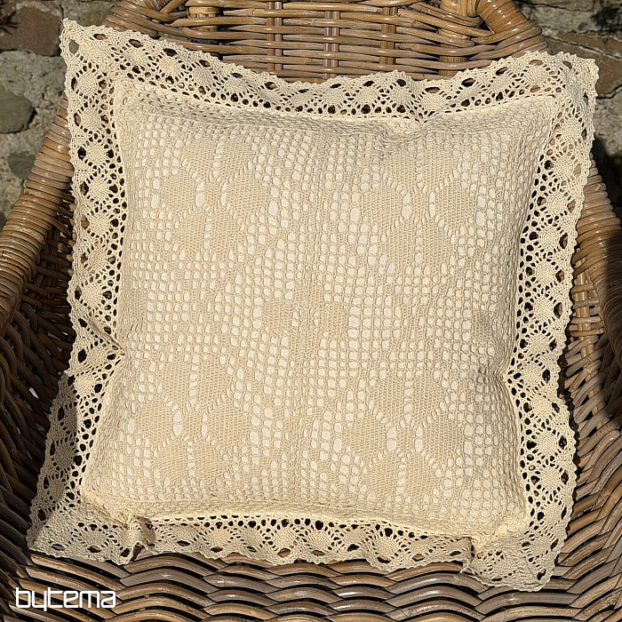 Tökéletes csipke párnahuzatok bézs színben, visszafogott mintával. Csodálatos dekoráció minden vidéki és vidéki stílushoz.