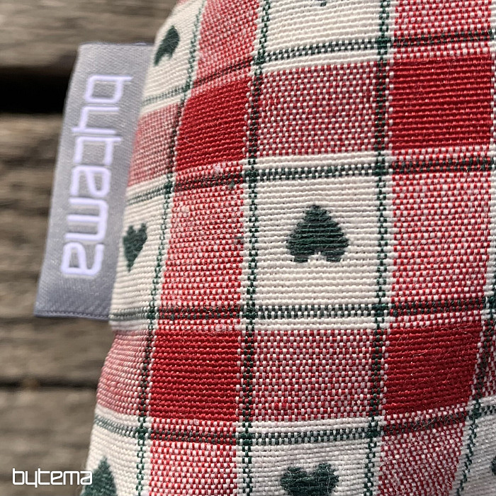Egy díszes párnahuzat sakktábla és szív mintával tökéletes vidéki házakba és faházakba.
