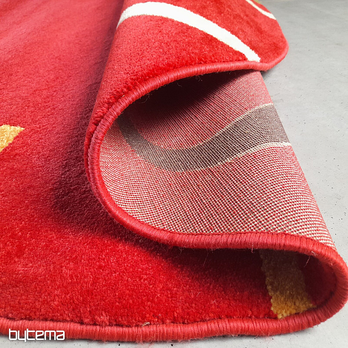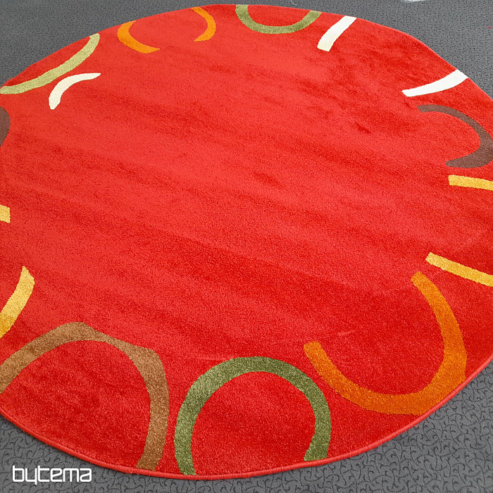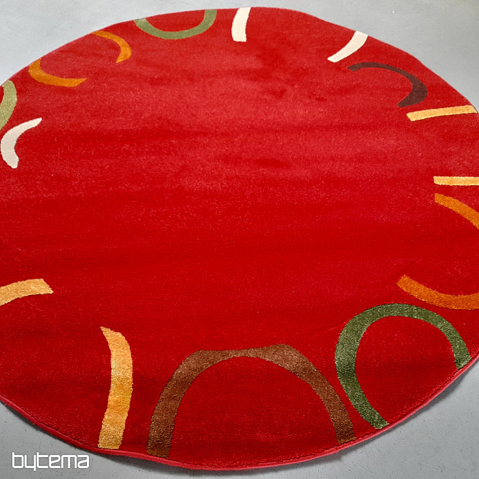 Ritka, kör alakú szőnyegdarab gazdag színekben, ahol az élénkvörös dominál.