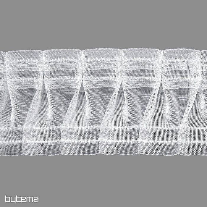 Függönyökhöz és könnyű drapériákhoz tervezett ráncolószalag. Szabályos cikkcakk hajtásokat hoz létre, és lehetővé teszi az anyag könnyű ráncolását. Hátulján horgok számára kialakított hurkok találhatók, így alkalmas karikákra és sínekre akasztásra.