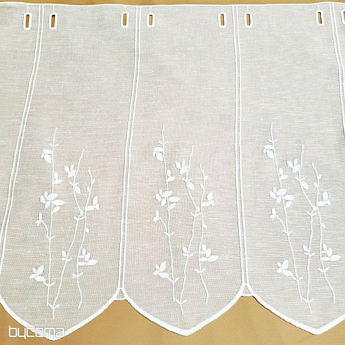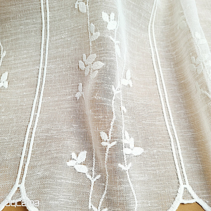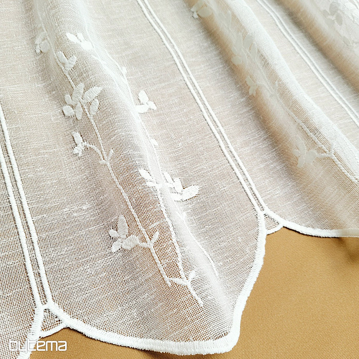 A német GERSTER gyártótól származó, finom, modern, szárakból és levelekből álló, lágy krémszínű mintázatú ólomüveg függöny a minőség állandó garanciája.