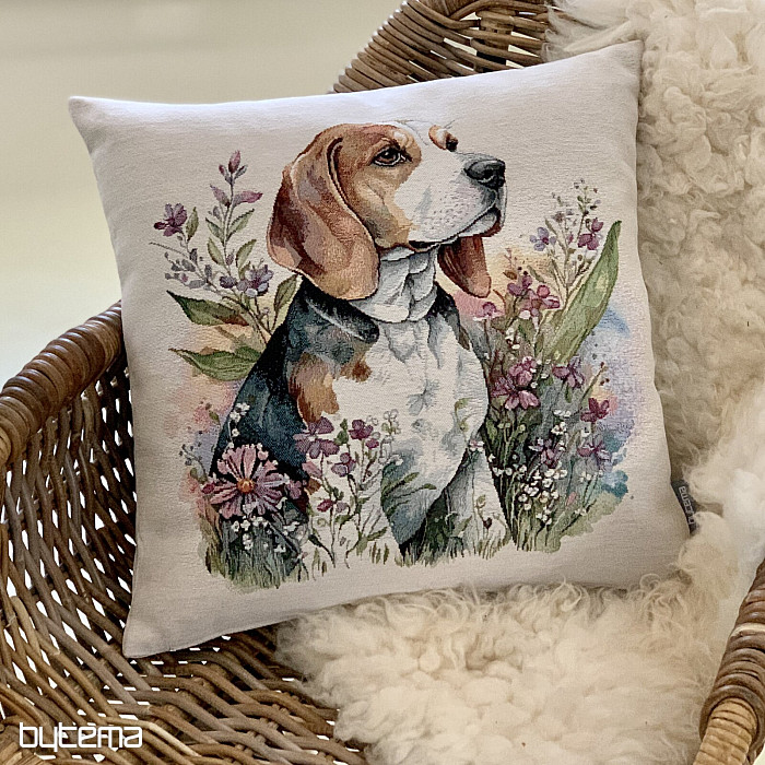 Gobelin párnahuzat egy gyönyörű kutya baráttal. Tökéletes ajándék a fajta szerelmeseinek, amely első látásra felmelegíti az arcukat.