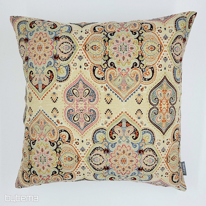 Egy indiai mintákkal díszített, 50 x 50 cm-es, nem szabványos méretű gobelinhuzat csodálatos kiegészítője lesz a nappaliban lévő kanapénak.