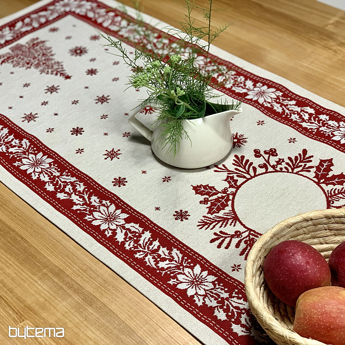 Karácsonyi gobelin terítő és sál finom mintával az ünnepi asztalra.