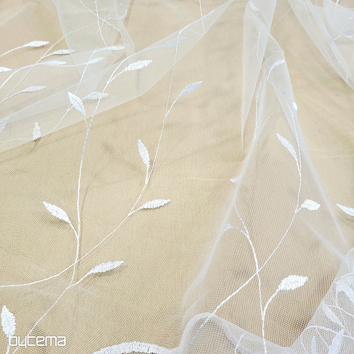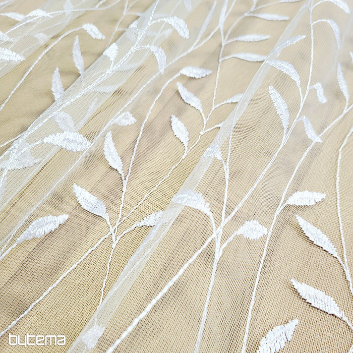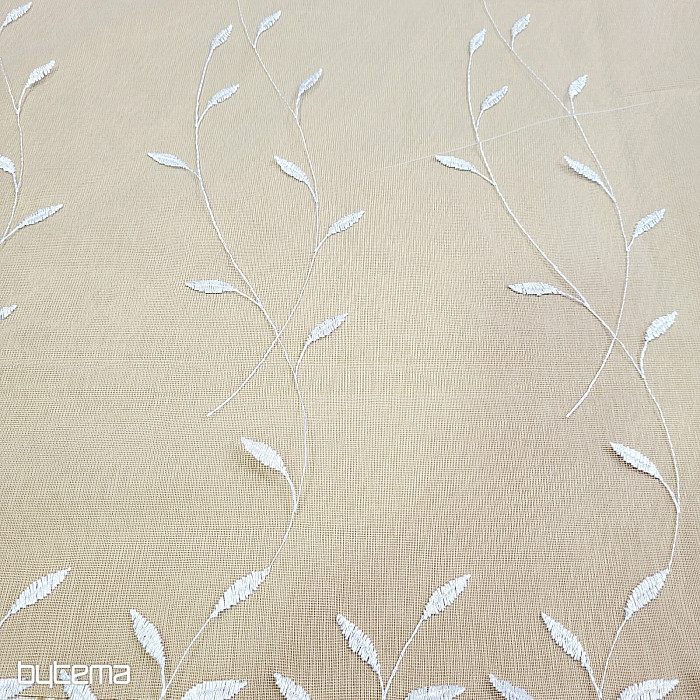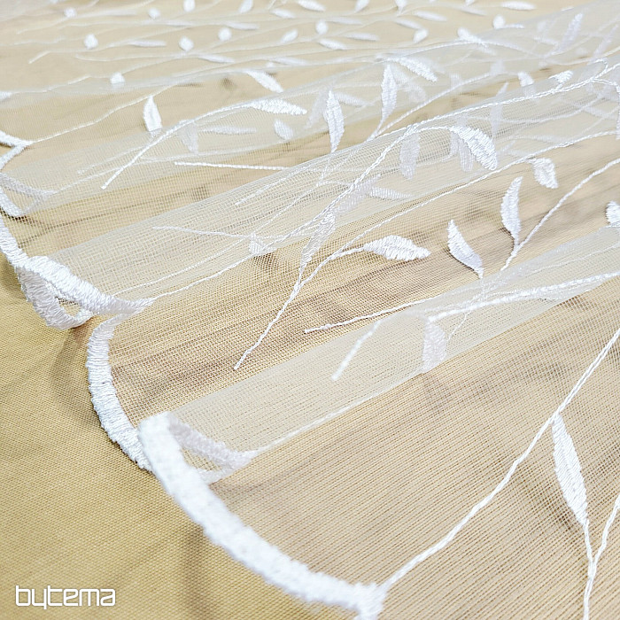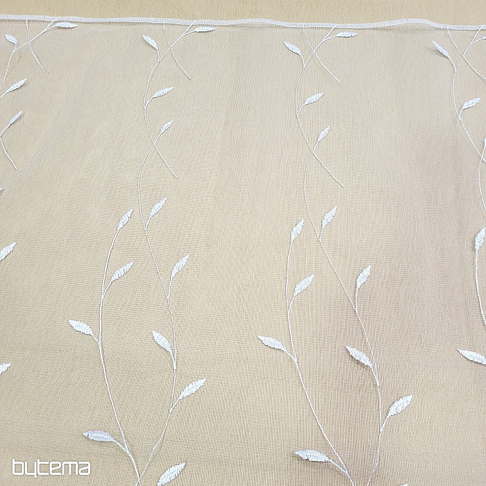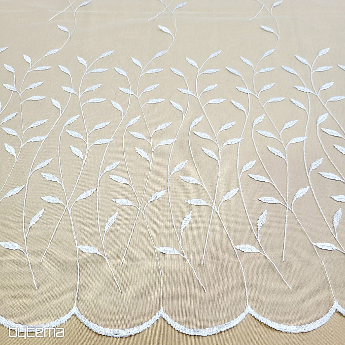 Függöny hímzett szegéllyel, amely teljes felületén végigfut, gyönyörű, finom, diszkrét levelekkel.