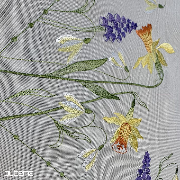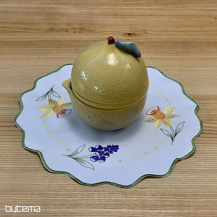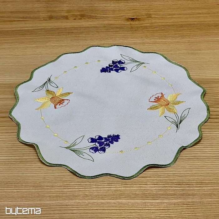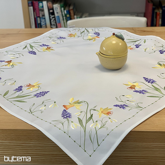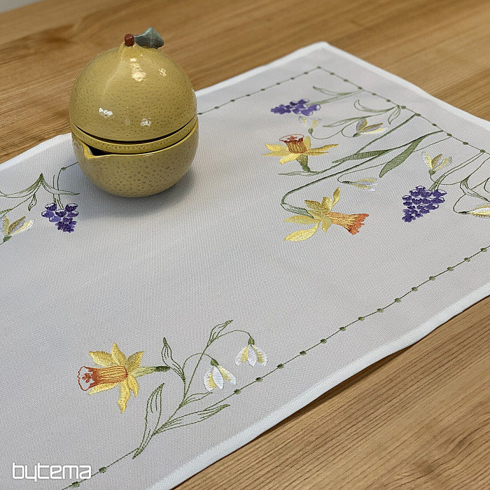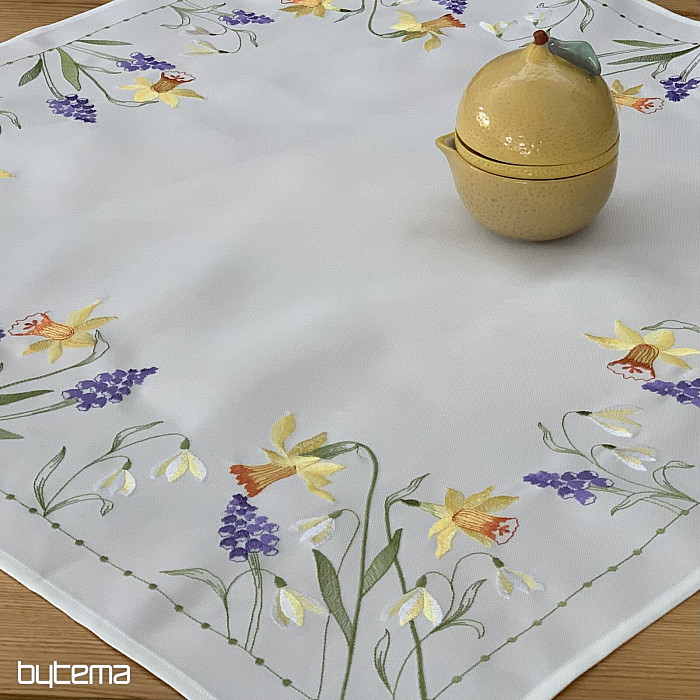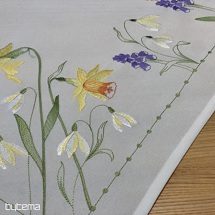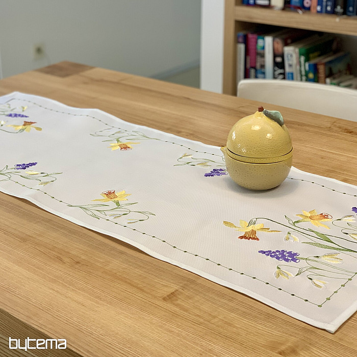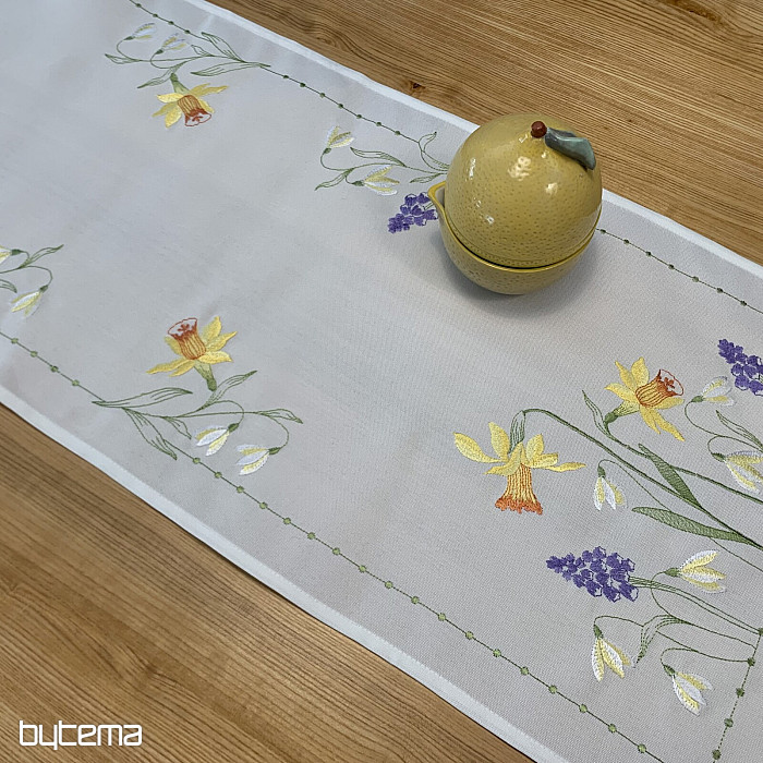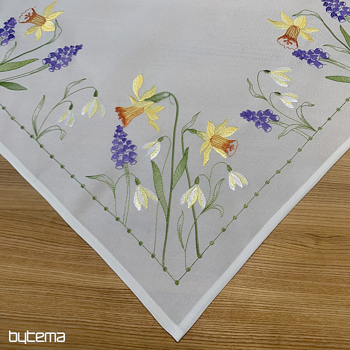 Hímzett terítő és sál nárcisz, hóvirág és szeder motívummal, egy soha el nem unalmas tavaszi motívummal.