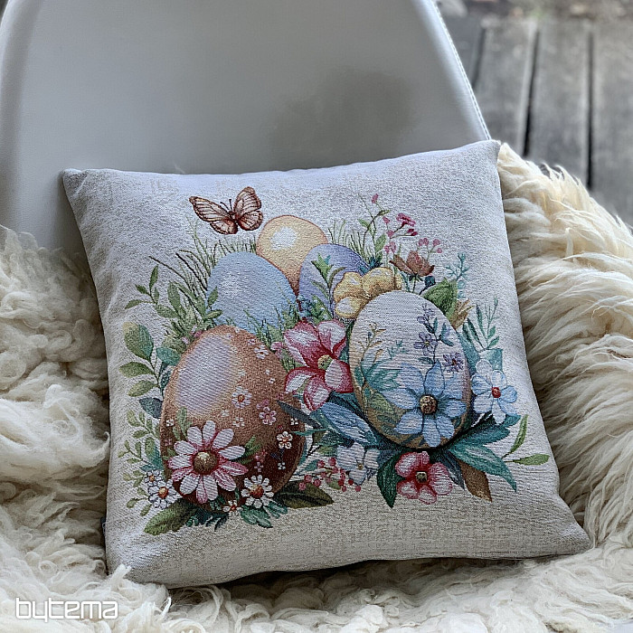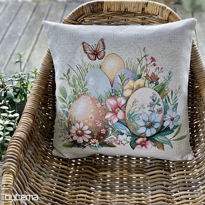 Egy húsvéti motívummal díszített gobelin párnahuzat gyönyörű kiegészítője lehet otthonodnak ebben az időszakban.