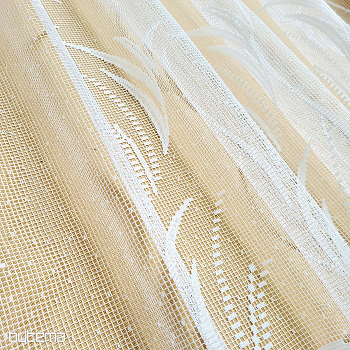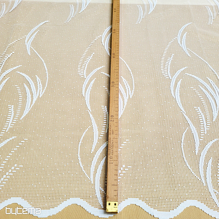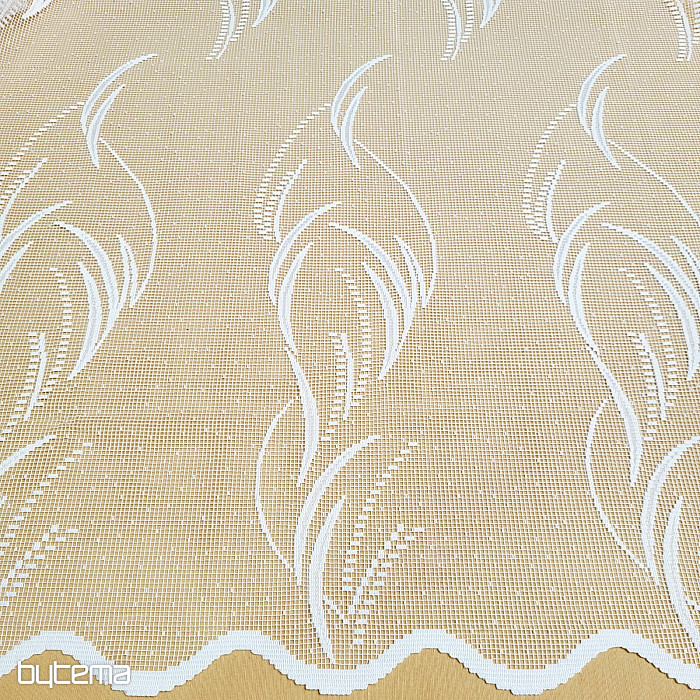 Gyönyörű jacquard függöny modern mintával. A függöny 50 cm magas díszes szegéllyel végződik. A függöny fennmaradó részén apró díszítőminták vannak kiemelve. Az ablakai ismét szépek lesznek.