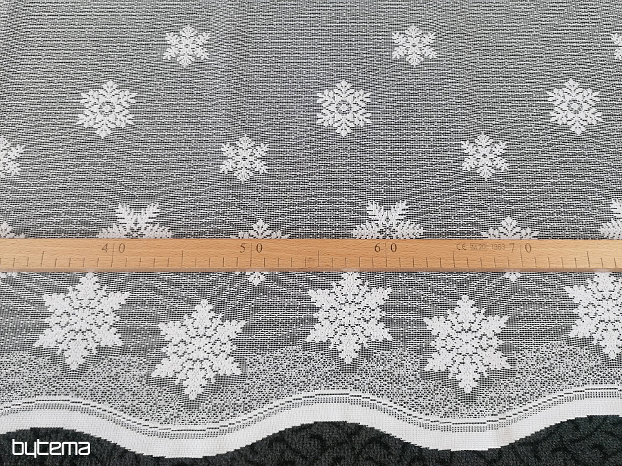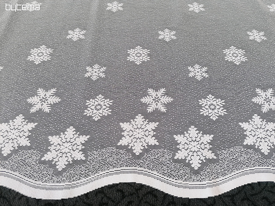 Jacquard függöny ólomüveg ablakhoz hópelyhek karácsonyi motívumával.