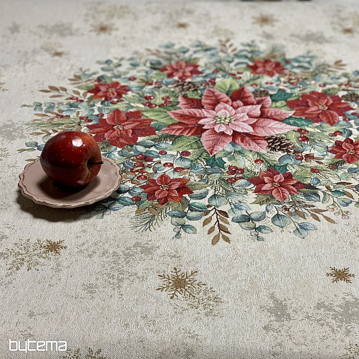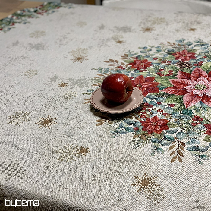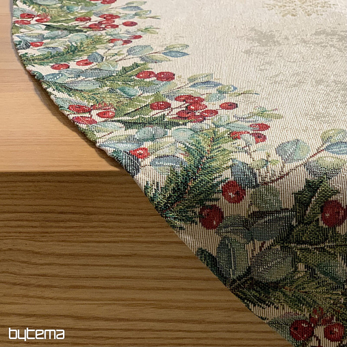 A karácsonyi rózsa motívummal díszített , kerek karácsonyi gobelin terítők gyönyörű díszei lesznek a karácsonyi asztalodnak.