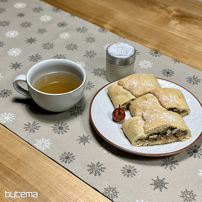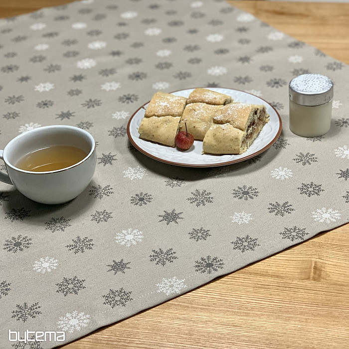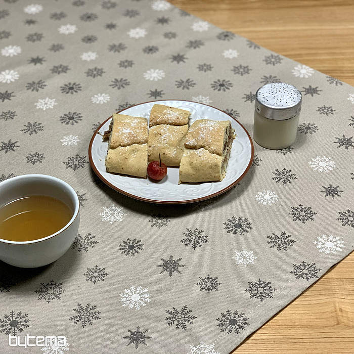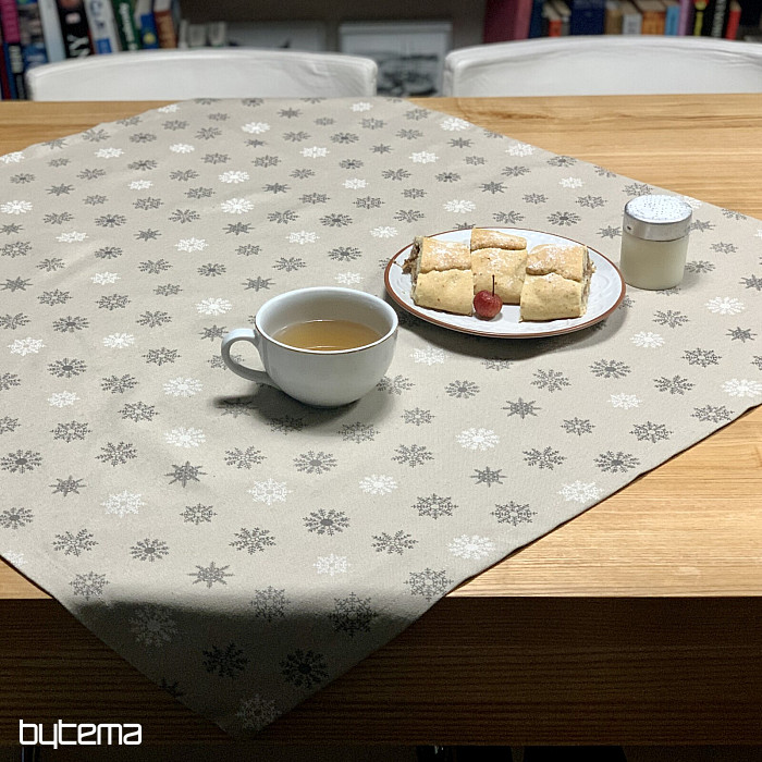 A gyönyörű, nagy és kicsi, fehér és szürke hópelyhekből álló, piros alapon díszített karácsonyi díszterítők és sálak varázslatos dekorációt jelentenek otthonodban.