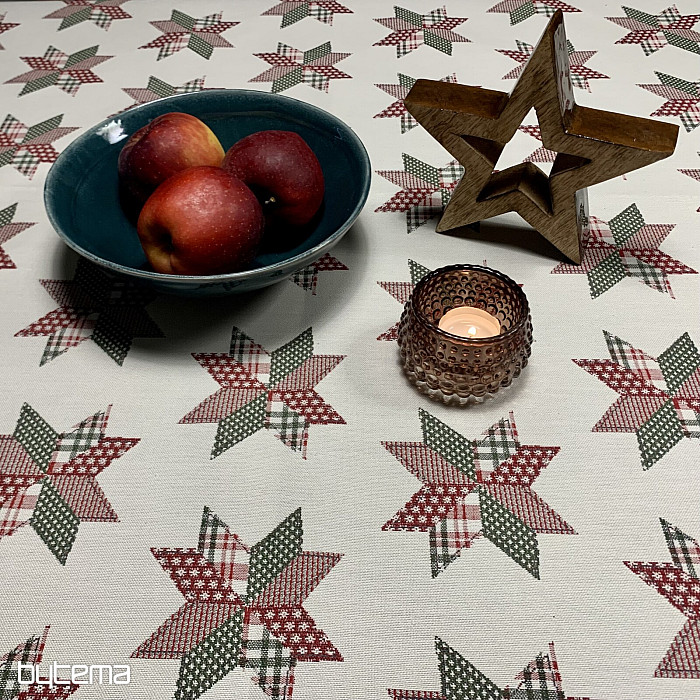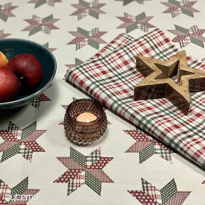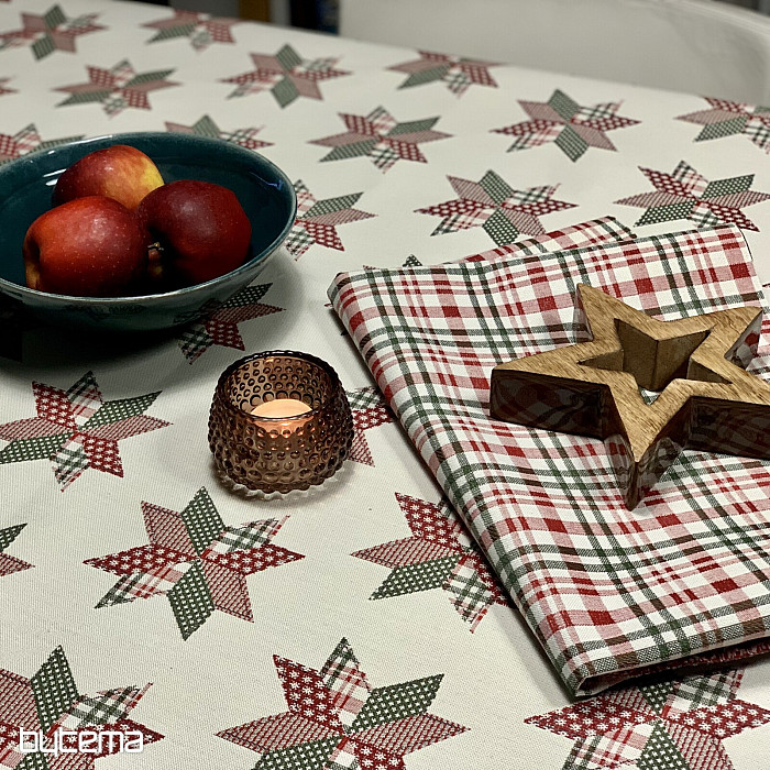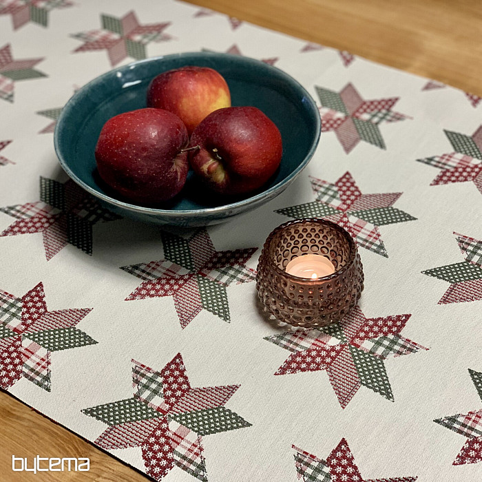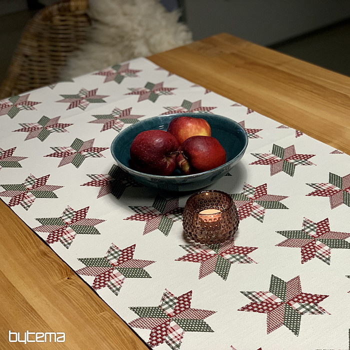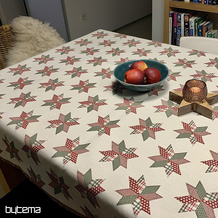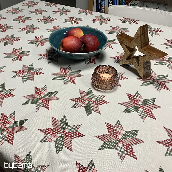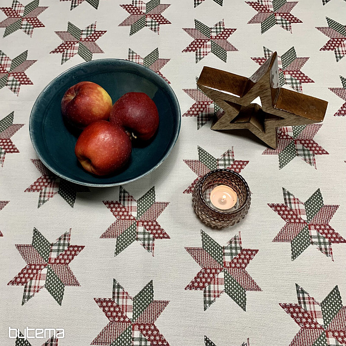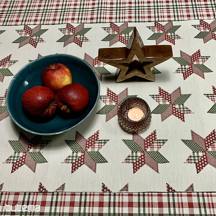 Egy luxus anyagból készült, patchwork mintájú, csillaggal díszített karácsonyi terítő vagy sál szintén a karácsony jelképe. Minden enteriőrbe illik, különösen a hidegebb évszakban.