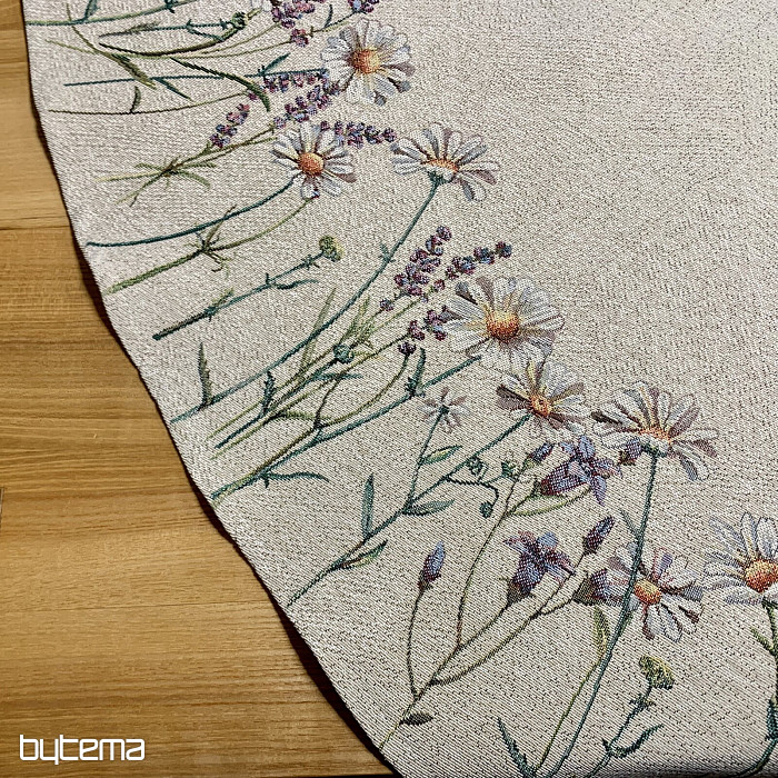 A gobelin kerek terítő tökéletes tavaszi pillanatokhoz a konyhában vagy a pergolán.