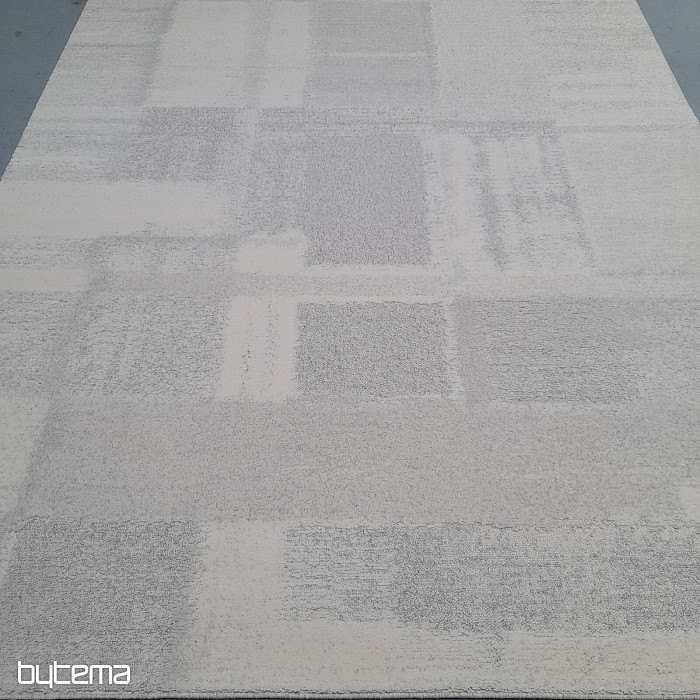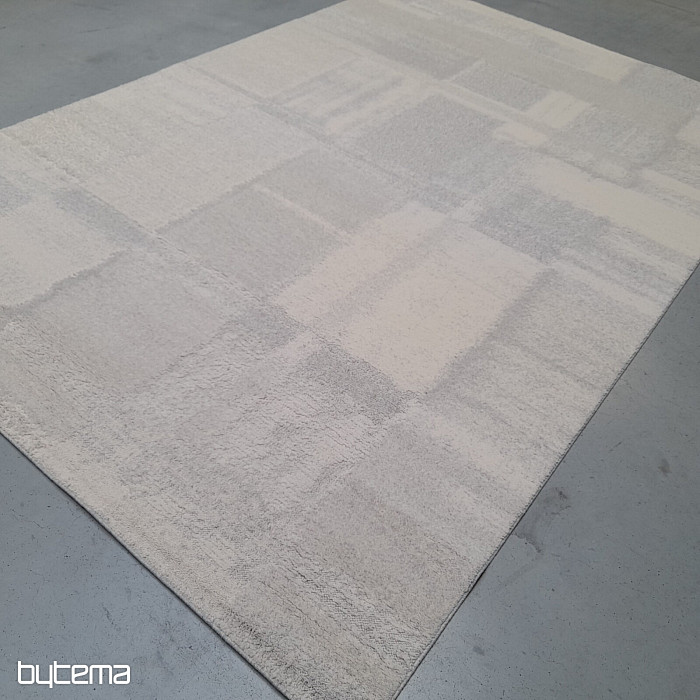 Luxus belga szőnyeg pasztell színekben, 3D geometrikus mintákkal. A plasztikus hatást a különbözően elrendezett bolyhok hozzák létre, amelyek juhgyapjúból készülnek. Ez garantálja a szőnyeg nagyfokú ellenálló képességét és tartósságát.