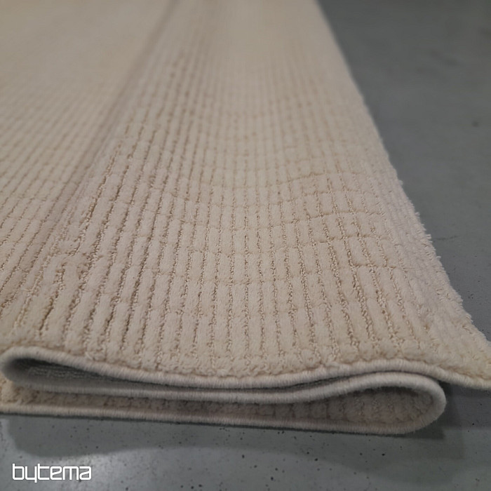 Luxus belga szőnyeg pasztell színekben, 3D geometrikus mintákkal. A plasztikus hatást a különbözően elrendezett bolyhok hozzák létre, amelyek juhgyapjúból készülnek. Ez garantálja a szőnyeg nagyfokú ellenálló képességét és tartósságát.