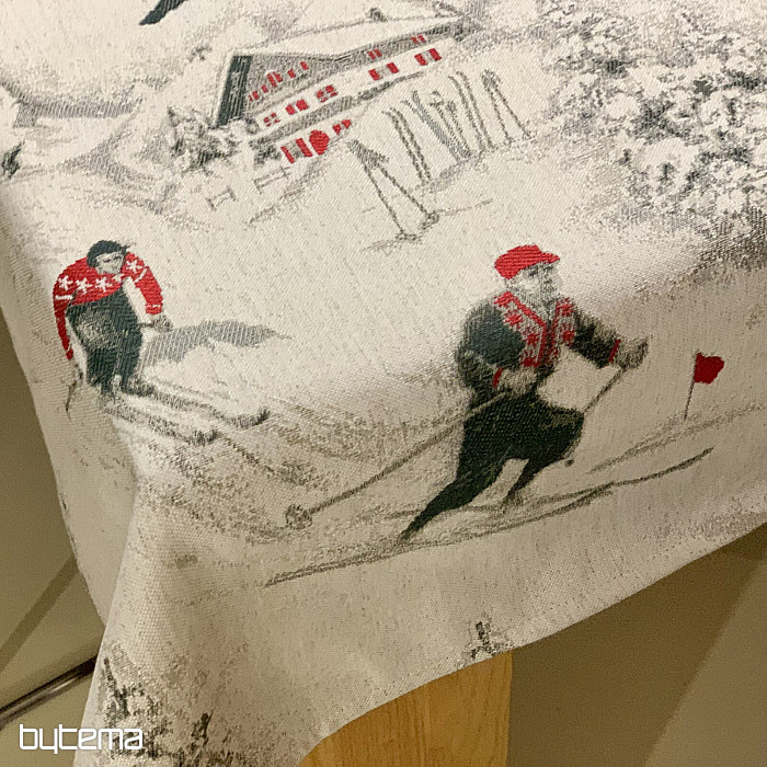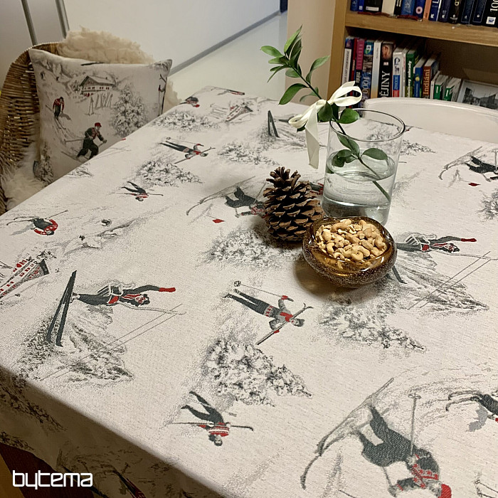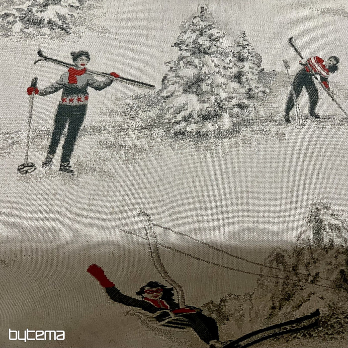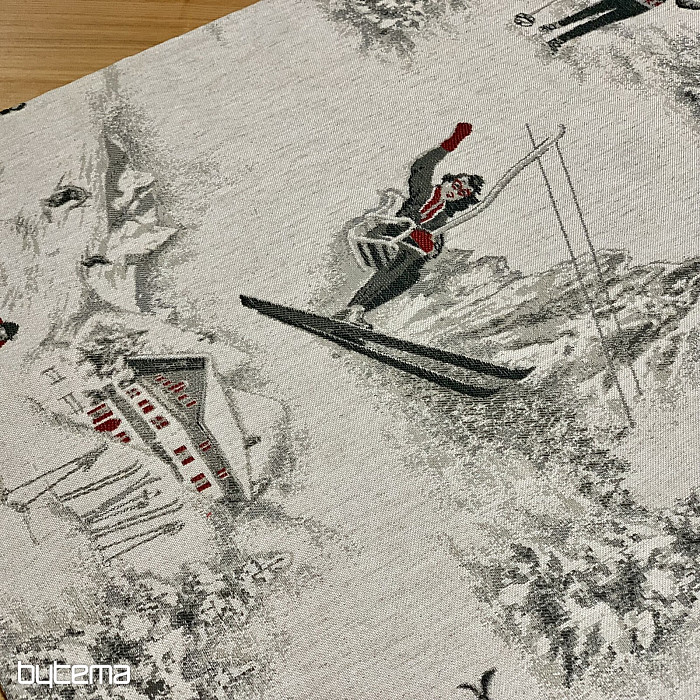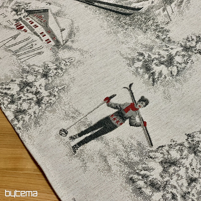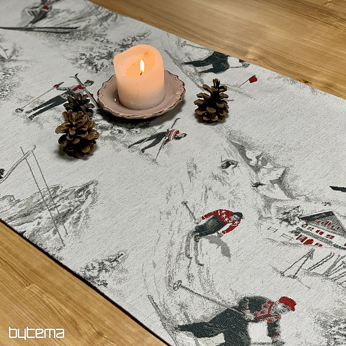 A téli síelés és minden körülötte lévő dolog ennek a fényűző anyagnak a fő motívuma. Gyönyörűen illeszkedik minden asztalra hegyi kunyhókban vagy faházakban.