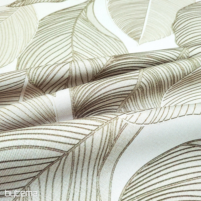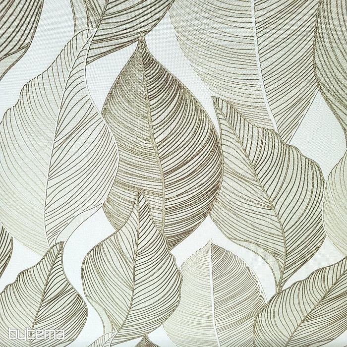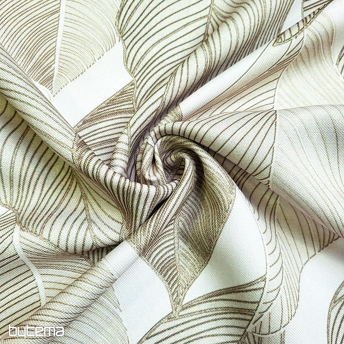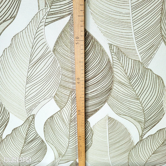 A zöld árnyalatú maxi levelekkel díszített dekoratív anyag alkalmas függönyök varrására, amelyek abszolút tökéletesek lesznek.