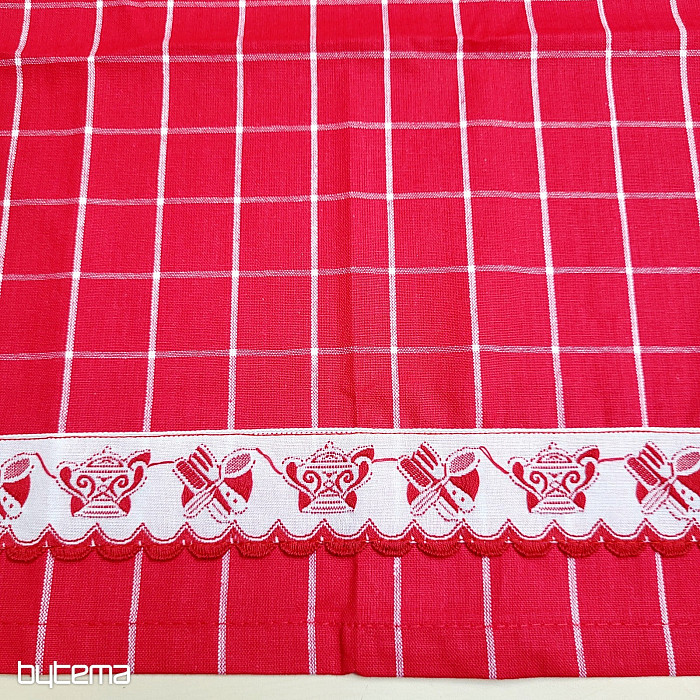 Puha, pamut konyharuhák kockás mintával és alsó szegéllyel, konyhai eszközökkel. Gyönyörű és finom dekoráció a konyhádba.