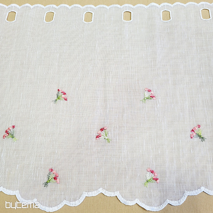 A függönyt három magasságban kínáljuk. 60 cm-es és 90 cm-es magasságban a függöny közepén egy hímzett virág található.