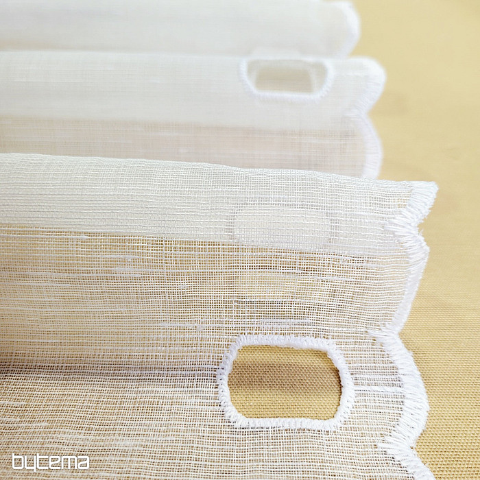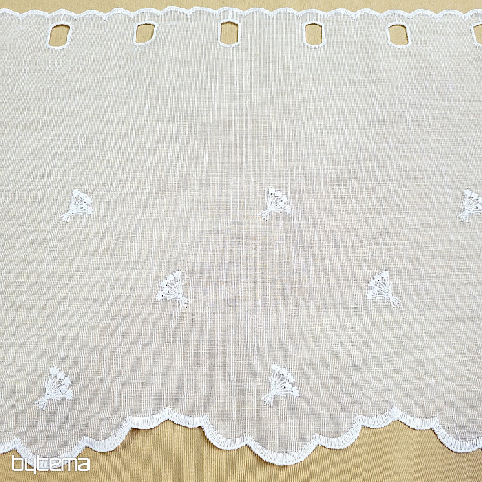A függönyt három magasságban kínáljuk. 60 cm-es és 90 cm-es magasságban a függöny közepén egy hímzett virág található.