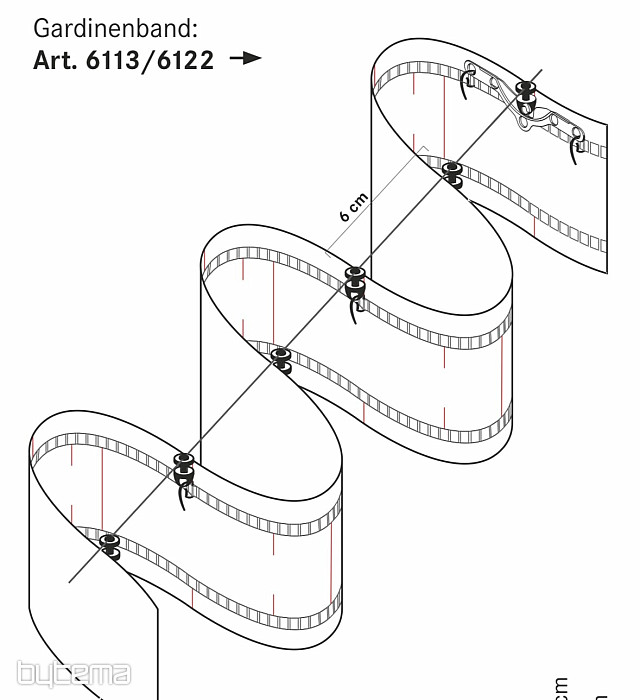 Ehhez a szalaghoz az EAN 3081 cikkszámú cikkszám szükséges - egy forgó csúszkákkal ellátott zsinór, amelyet a sínbe kell fűzni, és amely szépen megtartja az alakját - lásd a képet