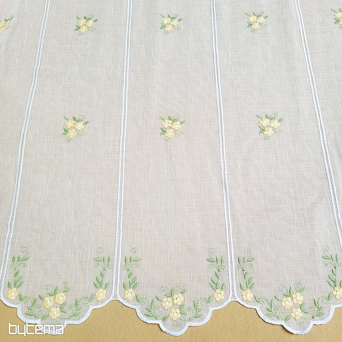 A függönyt három magasságban kínáljuk. 60 cm-es és 90 cm-es magasságban a függöny közepén egy hímzett virág található.