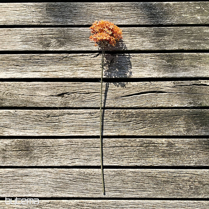 A szára 71 cm hosszú, és két virága van, amelyek több apró narancssárga virágból állnak. A nagy virág átmérője 16 cm, a kisebbé 11 cm. A szára sötét zöldesszürke, így a virág valósághűnek tűnik.