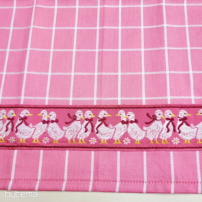 Puha, pamut konyharuhák kockás mintával és aranyos libákkal díszített alsó szegéllyel. Gyönyörű és finom dekoráció a konyhádba.