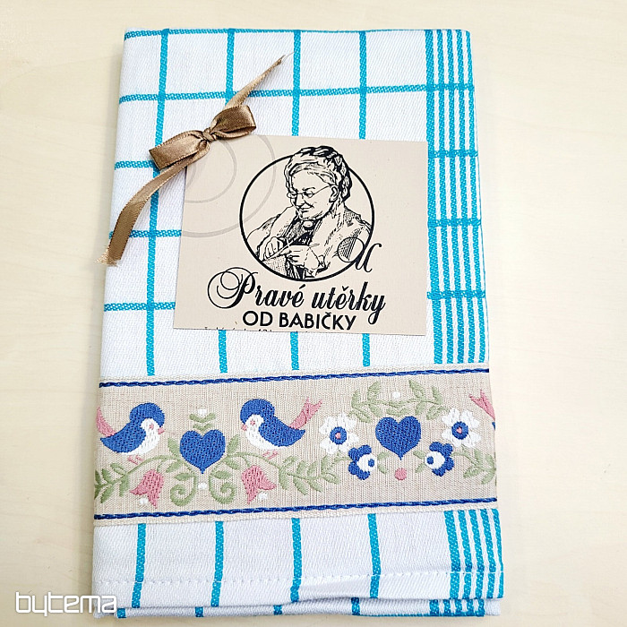 Puha, pamut konyharuhák kockás mintával és aranyos madarakkal díszített alsó szegéllyel. Gyönyörű és finom dekoráció a konyhádba.